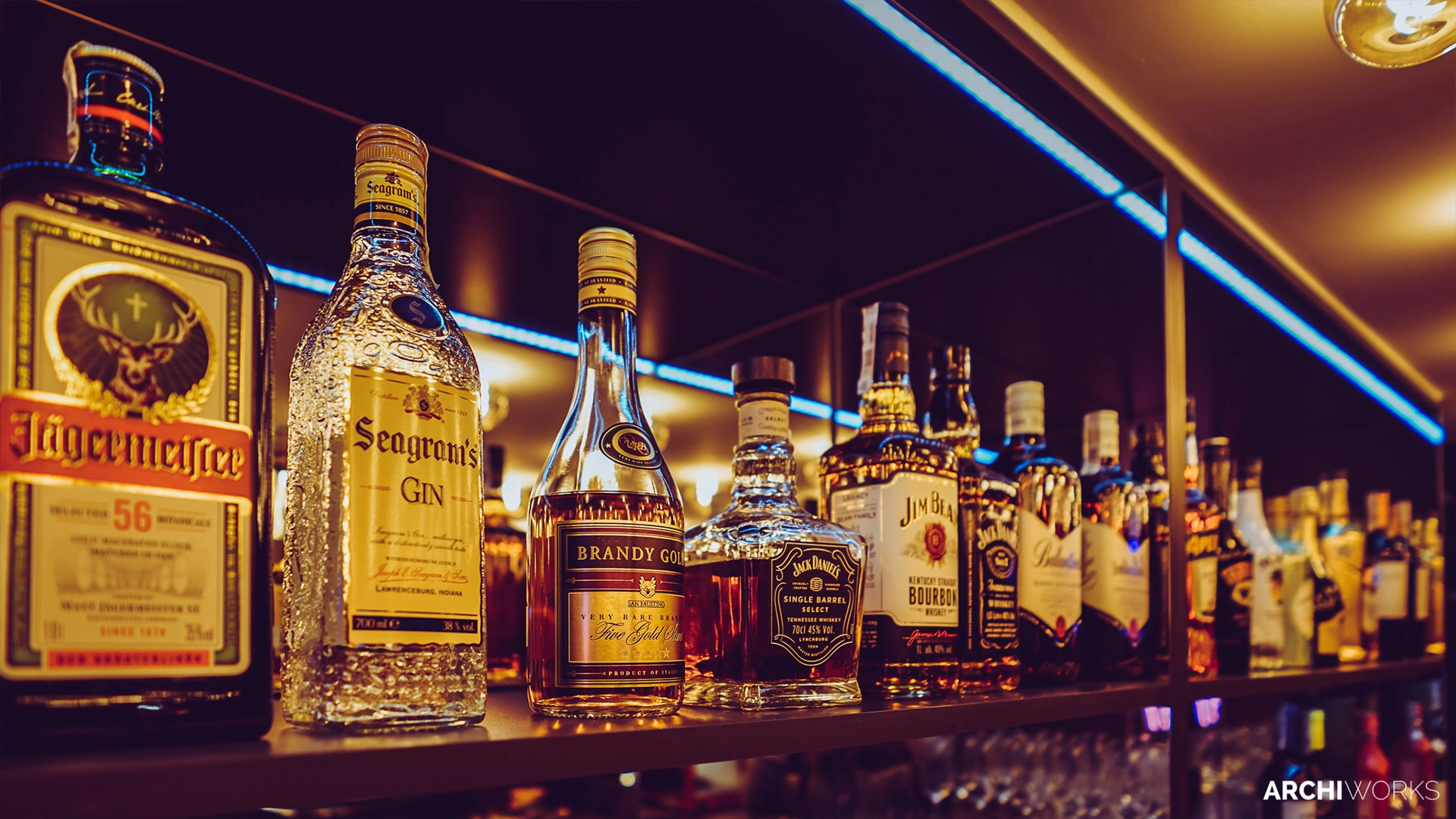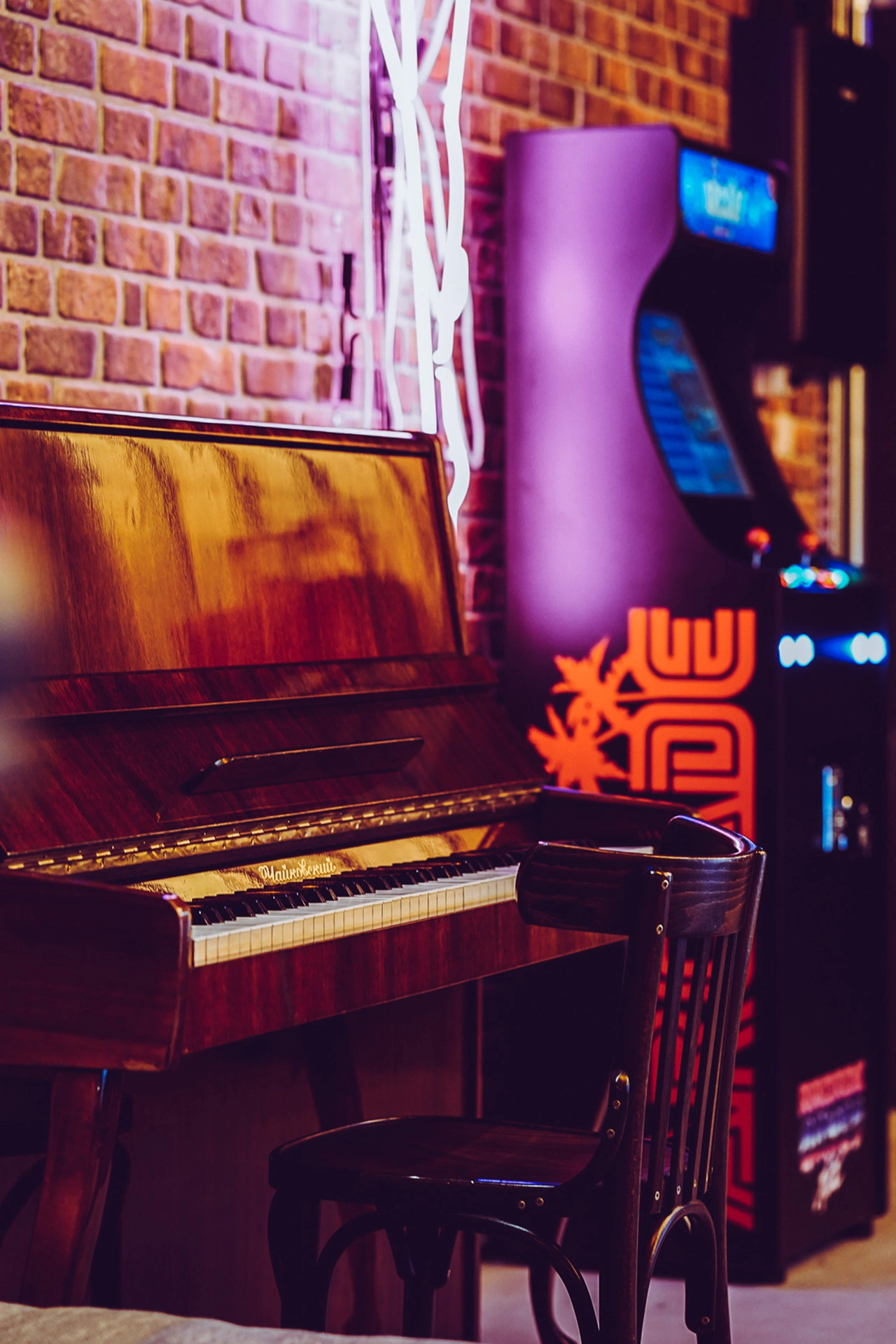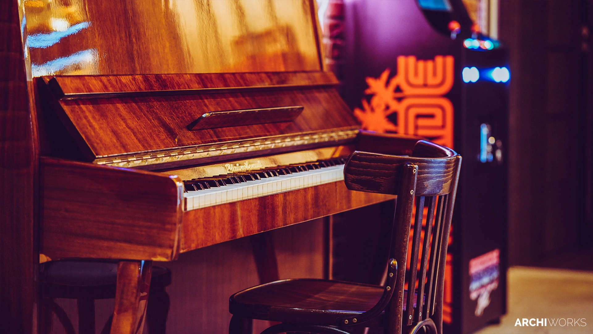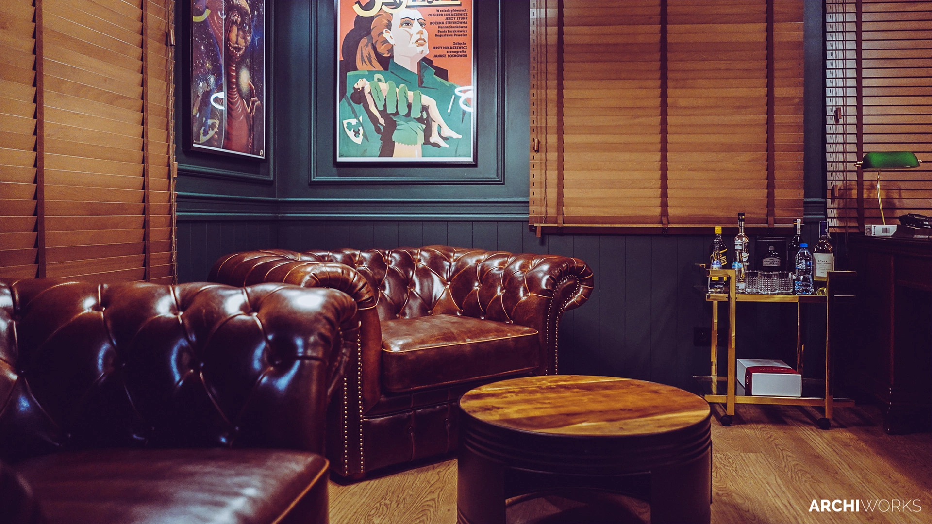 Projekt przestrzeni barowo-rozrywkowej dla prywatnego inwestora to wyrazisty miks estetyki retro z klimatem neonowego blichtru lat 80. i 90. Wnętrze zostało zaprojektowane jako osobna rzeczywistość — nostalgiczną, ale w pełni współczesną. Na pierwszym planie gra światło: kolorowe neony, podświetlane gabloty z kolekcjonerskimi hełmami oraz charakterystyczny sufit z żarówkami tworzą aurę rodem z dawnych kin czy automatów do gier. W przestrzeni znalazły się również klasyczne flippery, stół bilardowy i automat Pong, a całość dopełniają skórzane sofy typu chesterfield, ceglane ściany i detale w stylu vintage. Bar z podświetlanym frontem inspirowany jest ladą biletową kina — każdy element tej przestrzeni opowiada historię o kulturze gier, filmu i rozrywki sprzed kilku dekad. Archiworks stworzyło miejsce, które balansuje na granicy nostalgii i współczesnego komfortu, idealne do spotkań, zabawy i zanurzenia się w atmosferze minionych lat.