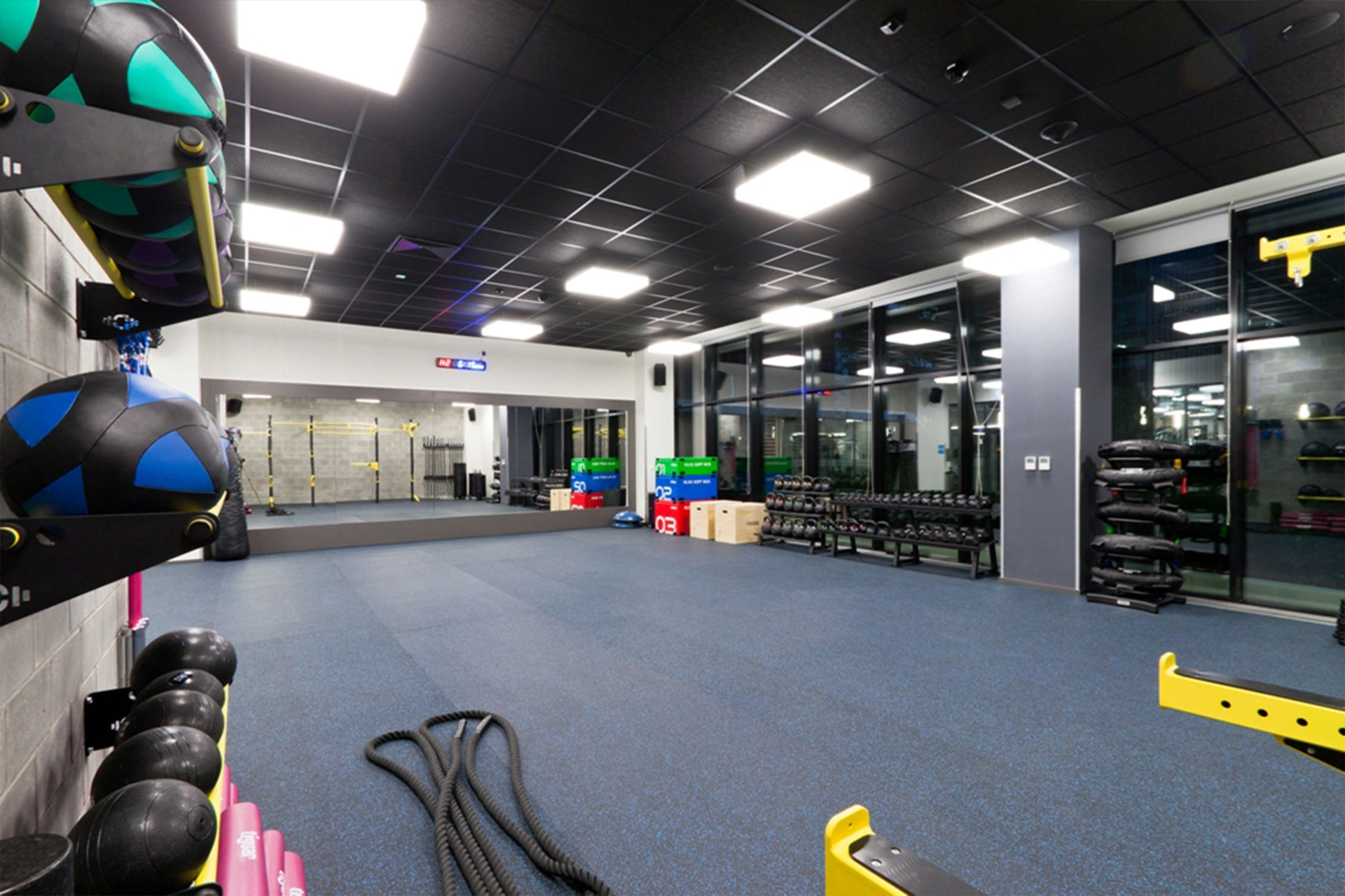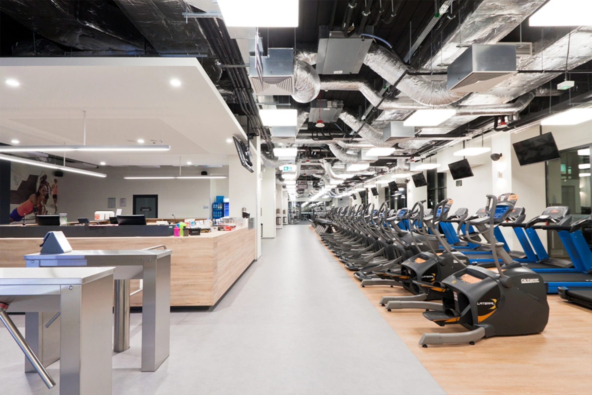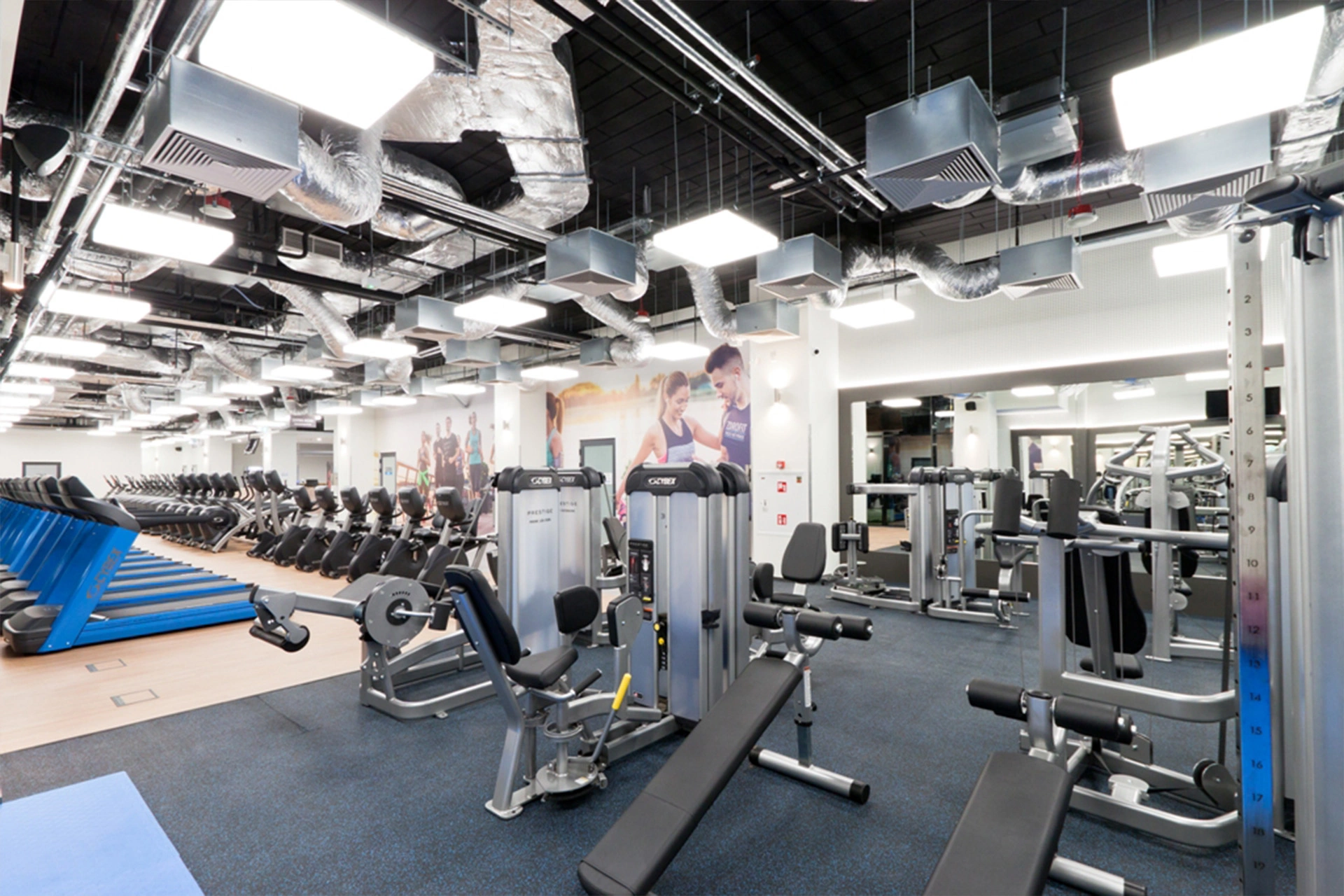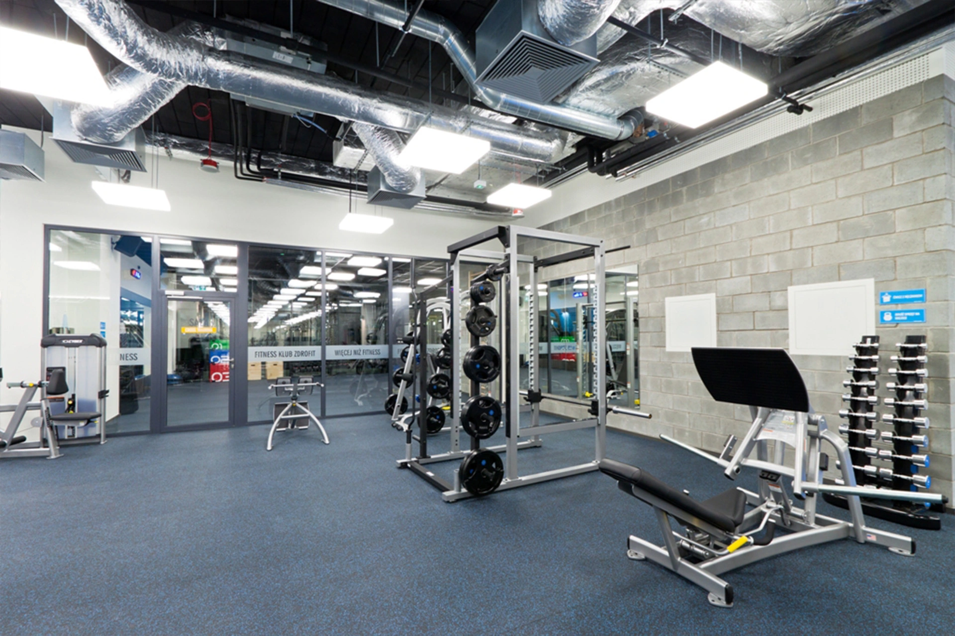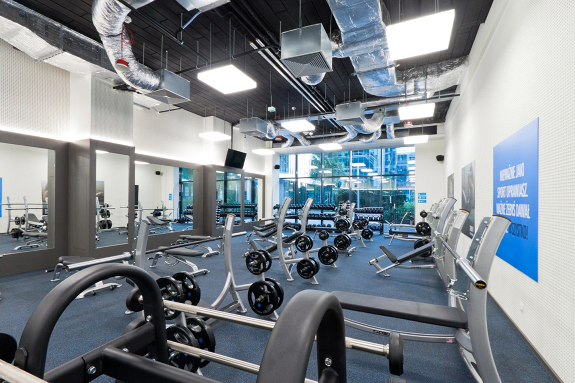 Projekt siłowni Zdrofit Inflancka powstał w sercu stołecznego klastru biurowego, tuż przy Dworcu Gdańskim. Wnętrza zaprojektowaliśmy w wysokim standardzie, oferując nowoczesną przestrzeń dla osób trenujących zarówno rekreacyjnie, jak i intensywnie. Klub dysponuje wydzieloną salą do treningu funkcjonalnego (cross), strefą cardio, siłownią, strefą wolnych ciężarów, a także przestronną salą fitness z profesjonalnym, amortyzowanym parkietem z drewna na legarach. Uzupełnieniem są eleganckie szatnie i strefa wellness z sauną. Dzięki dużym przeszkleniom i otwarciu na zieleń otaczającego kampusu biurowego, wnętrze zyskuje przestronność i naturalne światło, tworząc przyjazne warunki do codziennego ruchu.