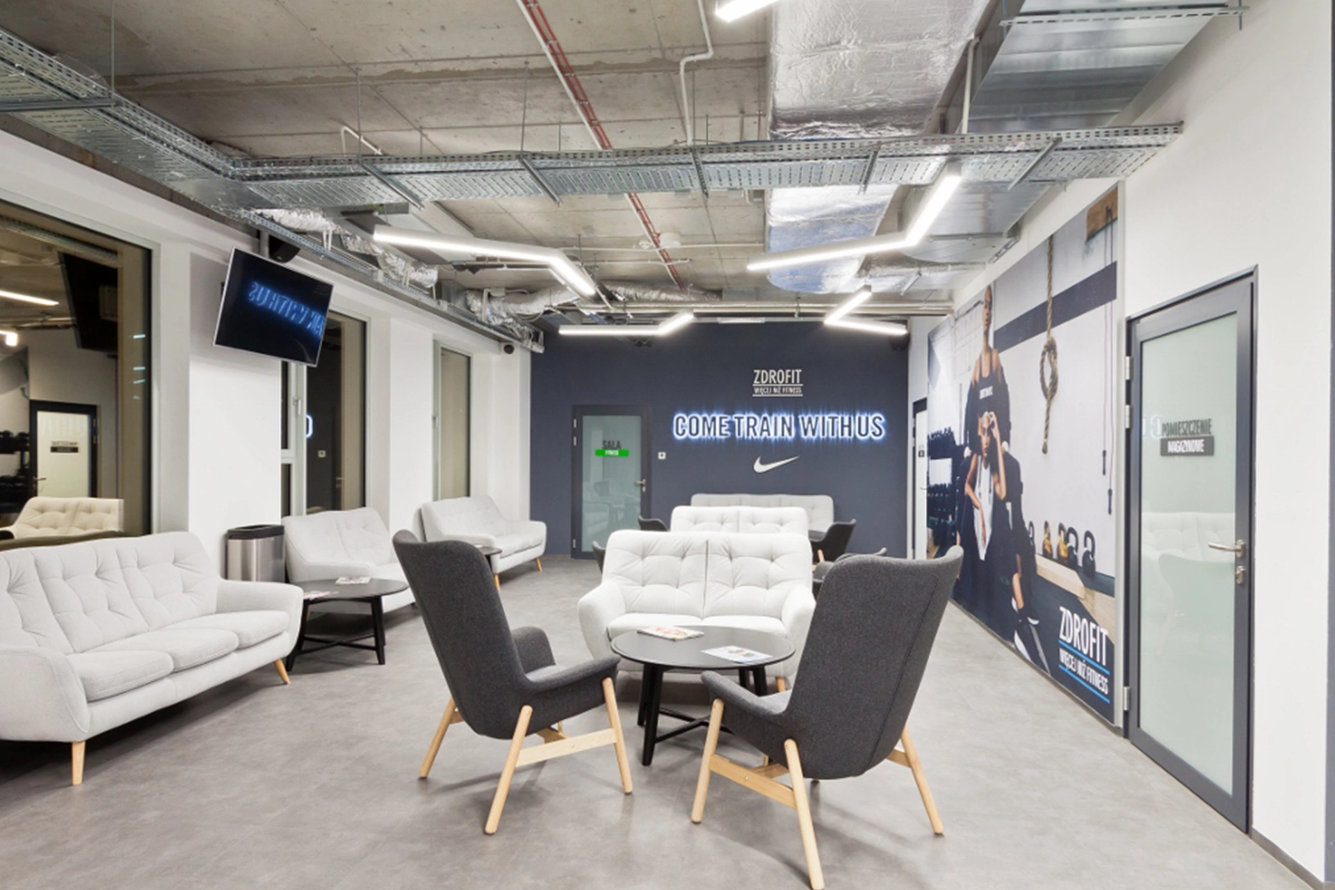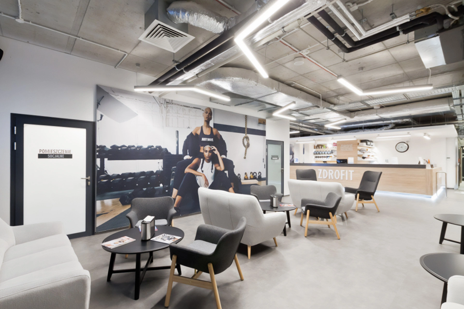 Zdrofit Grójecka to klub fitness zlokalizowany w nowoczesnym biurowcu przy jednej z głównych arterii Ochoty. Dzięki wyrazistej elewacji i widocznemu oznakowaniu jest łatwo rozpoznawalny i dostępny. Wewnątrz znajdują się strefy treningowe: cardio, siłowa, funkcjonalna oraz przestronna sala fitness. Jasne wnętrza, połączenie drewna, betonu i kolorystycznych akcentów tworzą spójną, energetyczną atmosferę. Całość uzupełniają komfortowe szatnie, recepcja z ofertą sprzedażową oraz sauna dla klubowiczów.