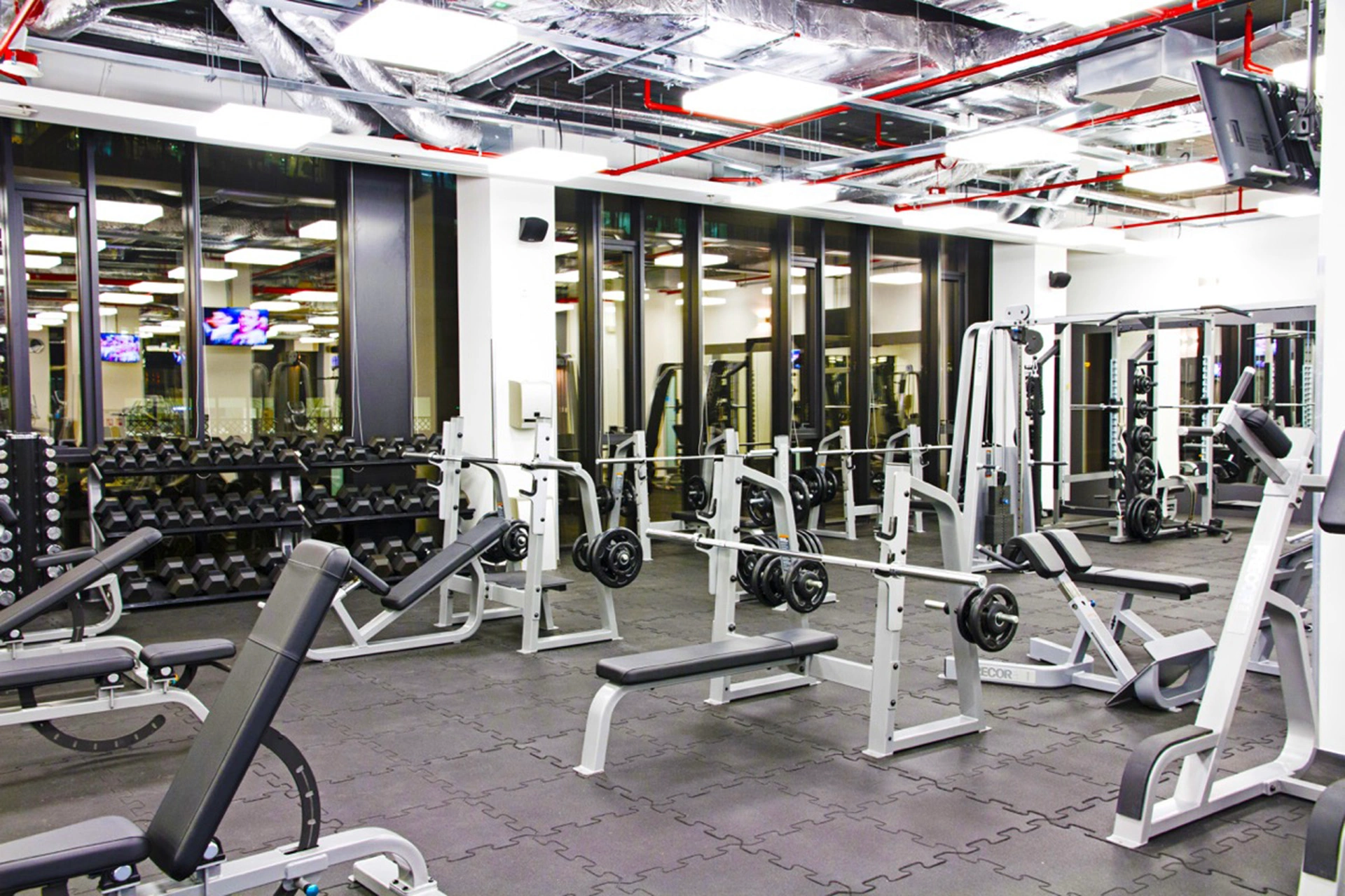 Zdrofit Konstruktorska to nowoczesna przestrzeń treningowa w biznesowym sercu Mokotowa. Projekt wnętrz powstał z myślą o komforcie użytkowników – dominują tu stonowane kolory, naturalne materiały i przemyślane oświetlenie, które sprzyja skupieniu i motywuje do działania. Funkcjonalny układ stref treningowych, od cardio po wolne ciężary, zapewnia płynność ruchu i wygodę nawet w godzinach szczytu. Całość dopełniają graficzne akcenty i minimalistyczny styl, który podkreśla miejski charakter miejsca.